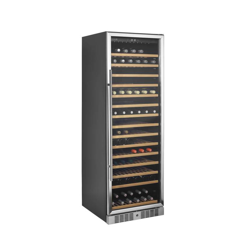 La gama TFW-F de vinotecas de acero inoxidable ofrece una solución moderna para exponer y almacenar botellas de vino. Presenta un diseño elegante con frontal de acero inoxidable, interior negro, iluminación LED suave y estantes de madera extraíbles. El moderno sistema de refrigeración es muy eficiente y reduce el ruido, el calor y el consumo de energía del refrigerador.