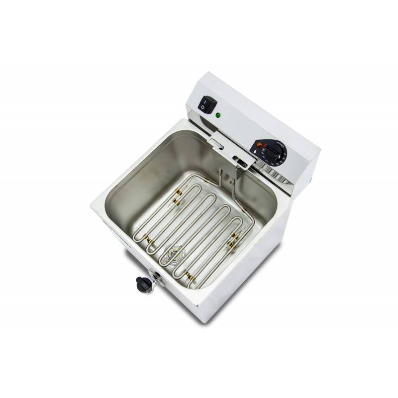 Freidora industria eléctrica de 10 litros de capacidad de aceite y 4,5 Kw. de potencia. Producto de gran calidad, fabricada integramente en acero inoxidable. Cabezal desmontable para facilitar la limpieza. Producto de fabricación nacional.