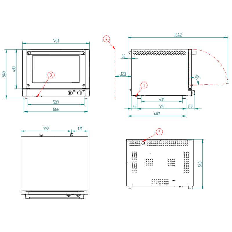 - Capacidad de Bandejas: 4x480x340 - 4xGN 1/1