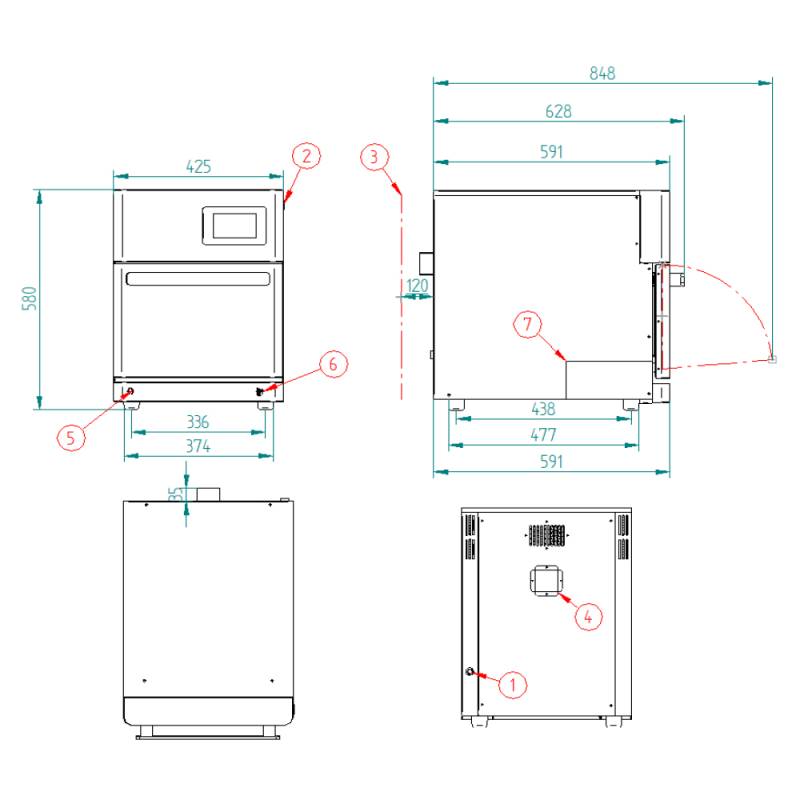Dimensiones internas (An)320 x (F)310 x (Al)190 mmDimensiones externas: : (An)425 x (F)630 x (Al)580 mmPotencia total : 3.750 WPotencia convección : 2.200 WPotencia microondas : 1.000 WTemperatura máxima : 275º CPeso : 78 KgVoltaje : 230V - 50HzConexión : Schuko MonofásicoCapacidad de bandejas : 1 x 300x300 (incluida)Módulo Wifi : De seriePaleta Incluida : Ref: 710746