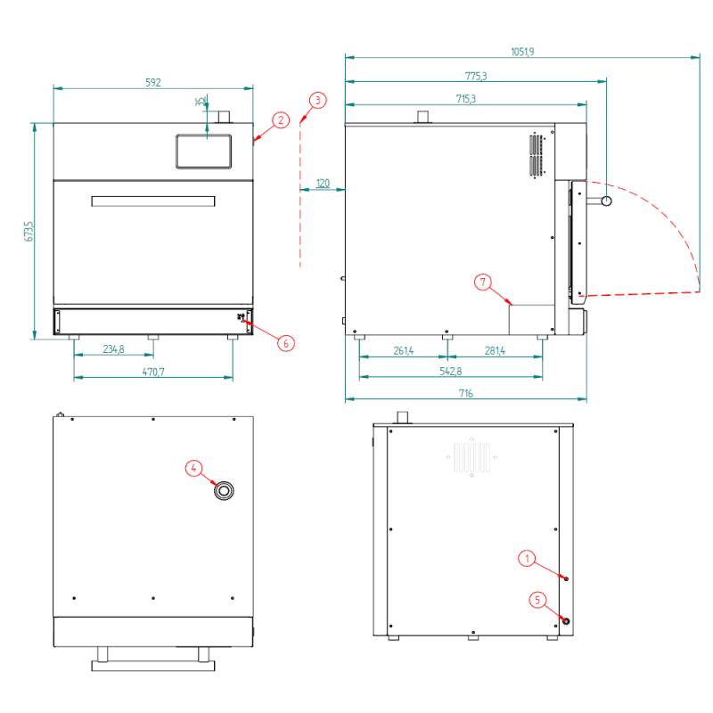 Dimensiones internas (An)480 x (F)405 x (Al)305 mmDimensiones externas: : (An)590 x (F)750 x (Al)675 mmPotencia total : 5.600 WPotencia convección : 3.500 WPotencia microondas : 1.000 WTemperatura máxima : 275º CPeso : 98 KgVoltaje : 400 V - 50/60HzConexión : Trifásica 3F + N + TCapacidad de bandejas : 3 x 430x340 (1 incluida)Módulo Wifi : De seriePaleta Incluida : Ref: 710746