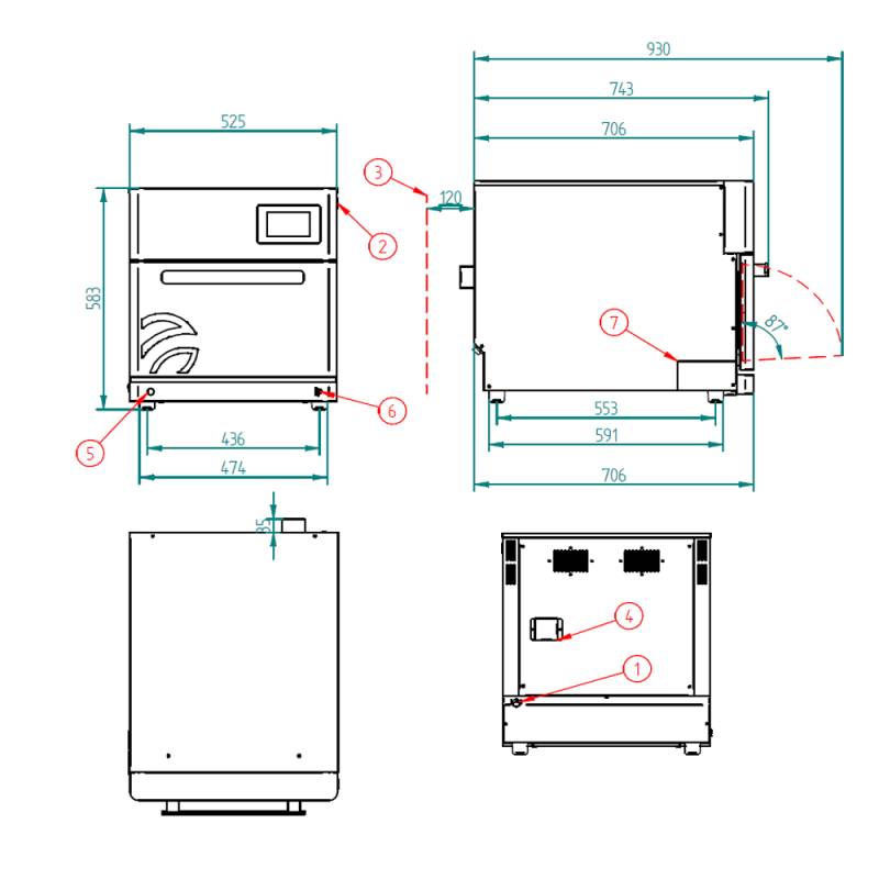 Dimensiones internas (An)420 x (F)505 x (Al)168 mmDimensiones externas: : (An)525 x (F)740 x (Al)580 mmPotencia total : 7.000 WPotencia convección : 3.200 WPotencia microondas : 2.000 WTemperatura máxima : 275º CPeso : 84 KgVoltaje : 402 V - 50/60HzConexión : Trifásica 3F + N + TCapacidad de bandejas : 1 x 400x400 (incluida)Módulo Wifi : De seriePaleta Incluida : REf: 710944