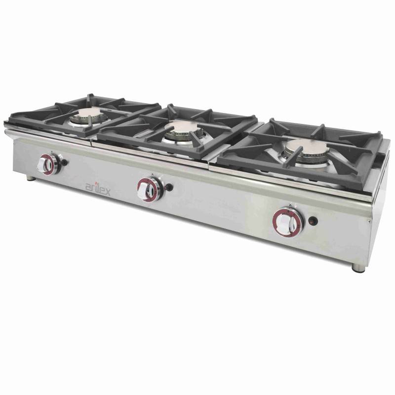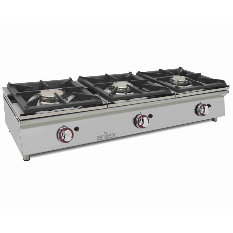 Cocina a gas sobremostrador ARILEX de 3 fuegos de 5,8 + 5,8 + 5,8 Kw 120CGN