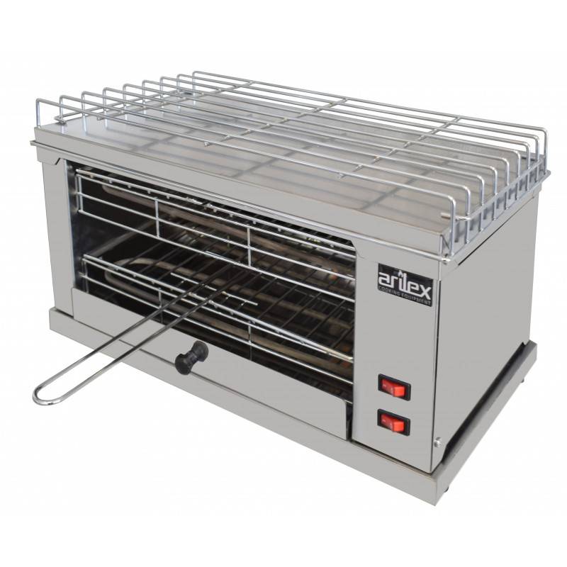 Tostador eléctrico de 1 piso MAISER TB1 para hostelería. Construido en acero inoxidable con acabado en alto brillo. Con resistencias blindadas de acero inoxidable fabricadas en España. Funcionamiento independiente que permite un mayor ahorro energético.