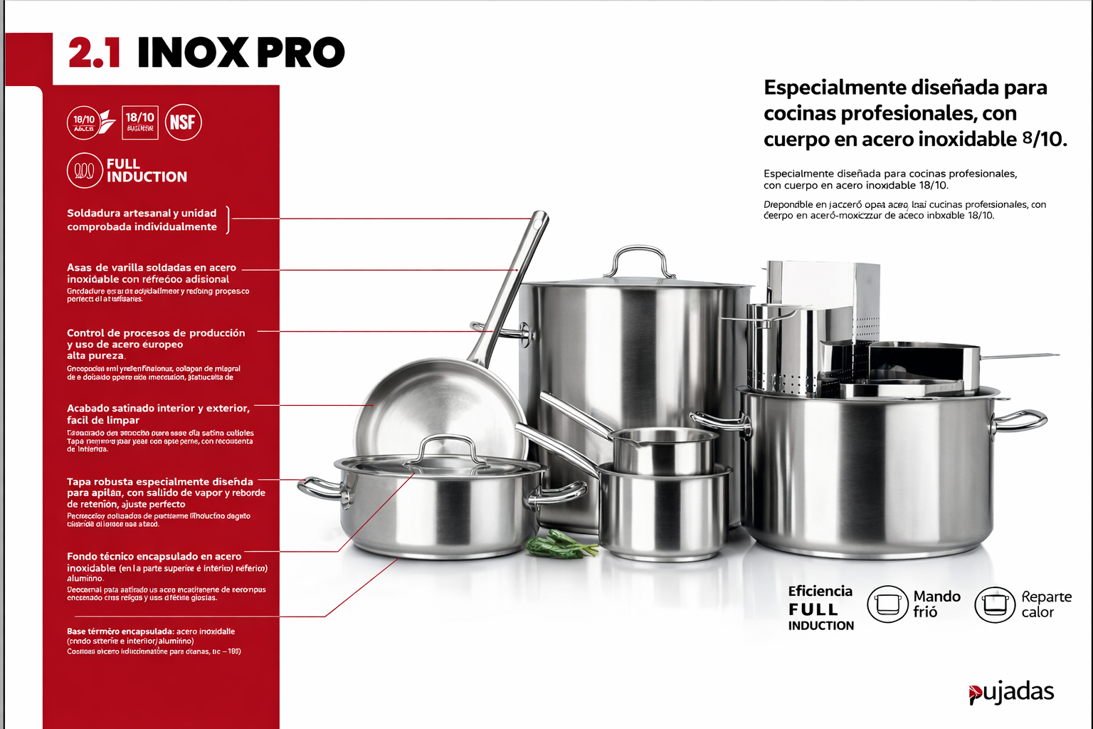 La olla profesional PUJADAS INOX PRO está diseñada para responder a las exigencias reales de la hostelería profesional, donde la resistencia, la eficiencia térmica y la durabilidad son factores clave en el trabajo diario.