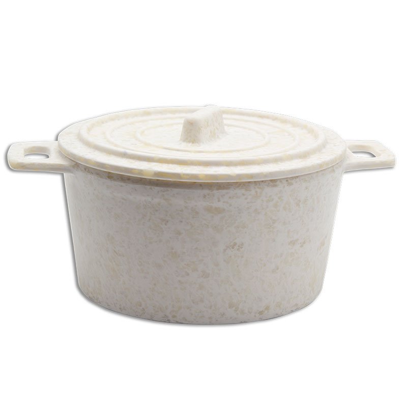 Cocotte redonda grande de Melamina 15 cm de Ø x 8,5 cm de alto (21 cm con asas) ADRIER Terral Blanco mármol