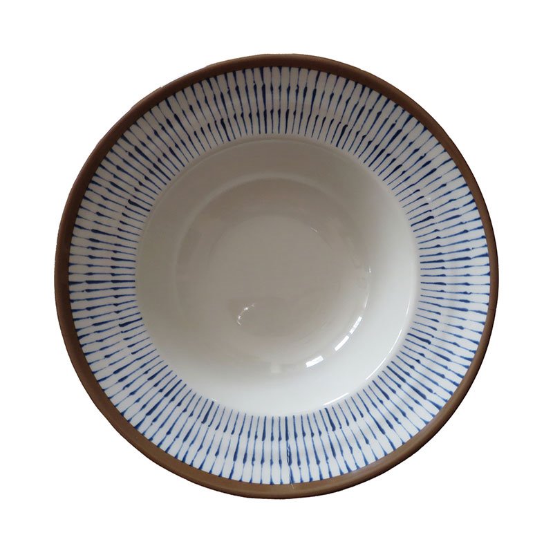 Plato hondo de Melamina 20 cm Ø x 5,5 cm alt. ADRIER Chambao Crema y azul con borde marrón