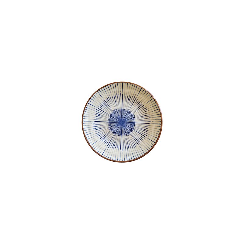 Plato llano pequeño de Melamina 17,5 cm Ø x 2 cm alt. ADRIER Chambao Crema y azul con borde marrón