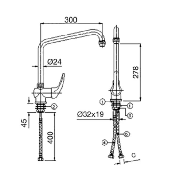 Grifo profesional hostelería mezclador monomando corto, caño alto en U