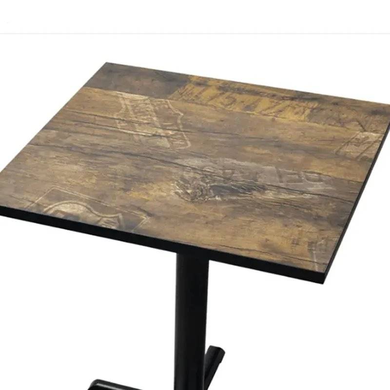 Mesa para bares, de la familia Sena de 70x70x74 cm. Pata central de hierro en color negro y tablero de melamina de alta calidad, con un acabado exclusivo que denominamos B3. Dentro de la familia de mesas Sena, tenemos mesas bajas redondas de 60 cm y altas de la misma medida.