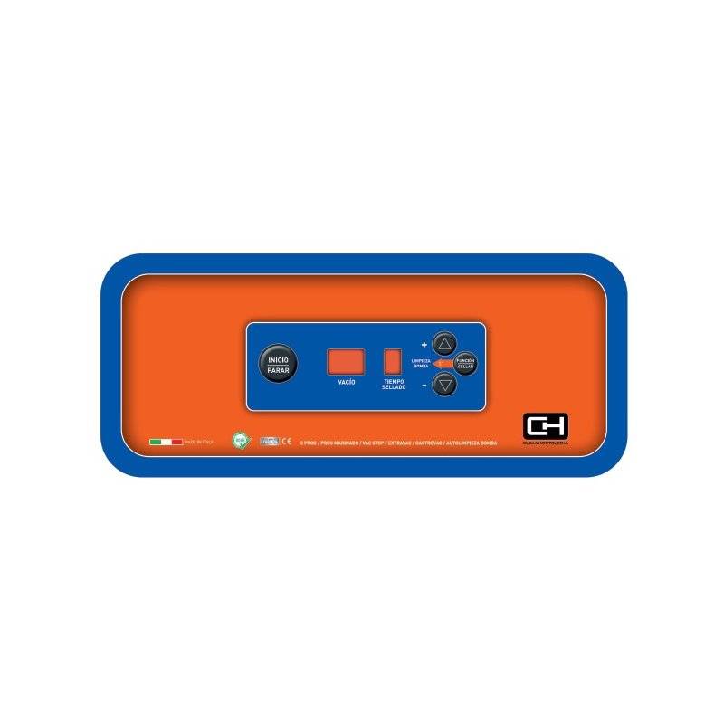 • Tienen una placa electrónica precisa y muy sencilla de utilizar pudiendo trabajar con bolsas de diferentes tipos. Puede envasar con bolsas lisas dentro de la cámara o con bolsa gofradas mediante aspiración externa. Además pueden hacer el vacío en contenedores.