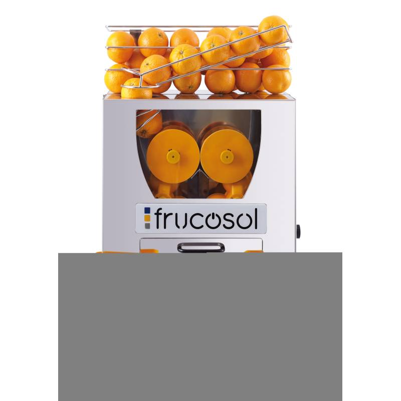 • FRUCUSOL F50 es una máquina exprimidora de naranjas automática de alimentación manual. Su atractivo sistema de exprimido a la vista del consumidor la convierten en un reclamo dentro de su establecimiento.