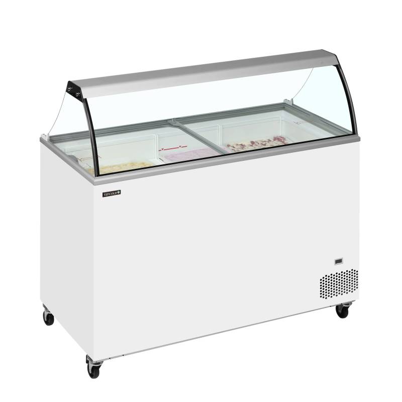 La gama IC-SO de vitrinas de helados ofrece una excelente calidad a un precio competitivo. El modelo cuenta con tapas deslizantes que permiten un fácil acceso al helado para servir y ayuda a aislar la unidad cuando no está en uso. Dispone de una tapa de cristal tipo vitrina y es idónea para la personalización con la marca para atraer la atención de los clientes hacia la unidad y su gélido contenido. El congelador se optimiza con cestos que pueden alojar tarrinas de plástico de 5 litros en la parte superior y dispone de espacio de almacenamiento debajo.