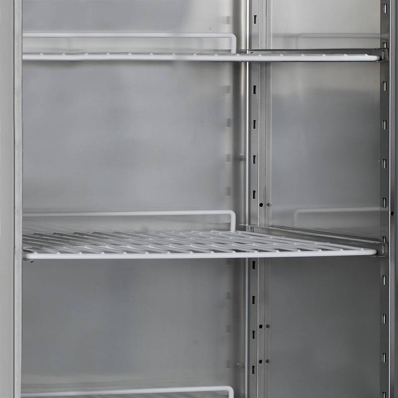 La gama RF de congeladores verticales con 1 o 2 puertas macizas se ha creado para cocinas profesionales y cuenta con estantes ajustables. Está realizada en acero inoxidable SS304 de alta calidad para hostelería y lleva ruedas robustas para una mejor movilidad y facilidad de limpieza. La refrigeración asistida por ventilador garantiza que el contenido se mantiene fresco, y la temperatura se puede ajustar en un termostato digital. También hay disponible una gama RK con dimensiones GN.