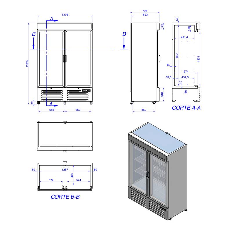 - De dotación se suministran 4 parrillas por puerta. Estos estantes están diseñados para presentación de bebidas y alimentos, ideal para supermercados y tiendas de conveniencia.