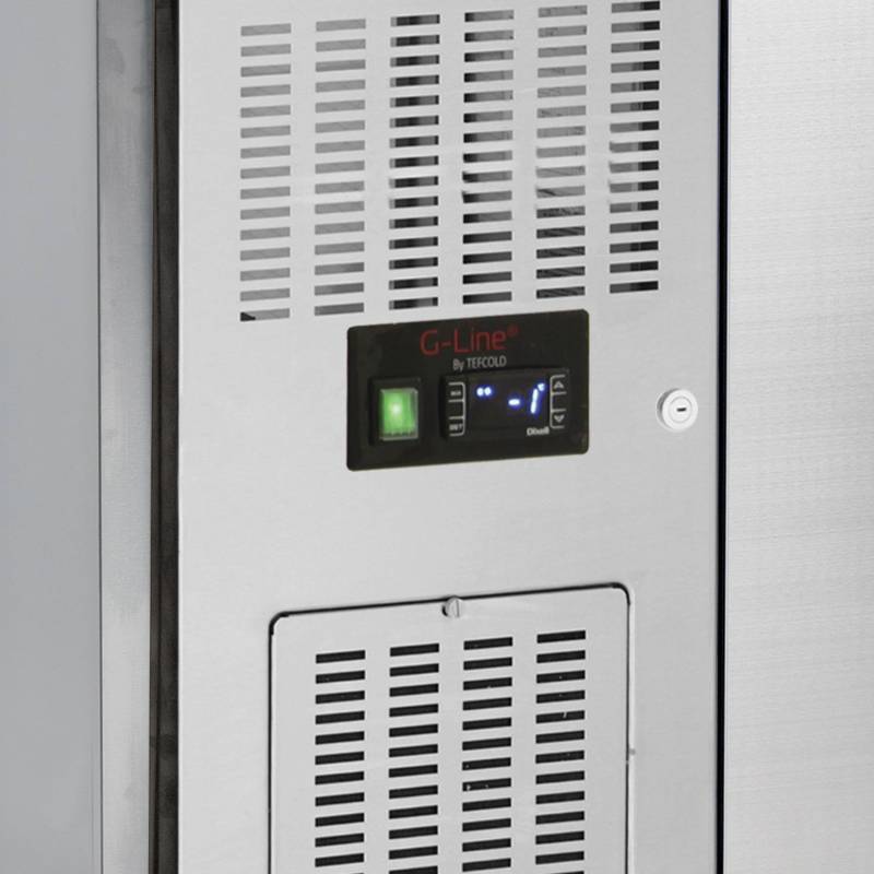 La mesa para congelados G-line, con una excelente relación calidad-precio, está diseñada con armarios de dimensiones GN1/1 y admite a la perfección bandejas Gastronorm. Está realizada en acero inoxidable y es una excelente opción para cocinas industriales. Cuenta con estantes y patas ajustables para una flexibilidad óptima.