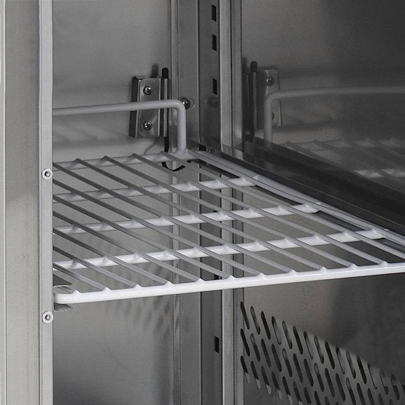 La gama SA de mesas frías Saladette es perfecta para entornos de cocinas muy concurridas con armarios de dimensiones Gastronorm GN1/1 y estantes ajustables. Si se prefiere, también es posible instalar cajones Gastronorm. Estas mesas frías están disponibles en varios tamaños, con encimera de mostrador o cubierta abierta apropiada para bandejas GN.