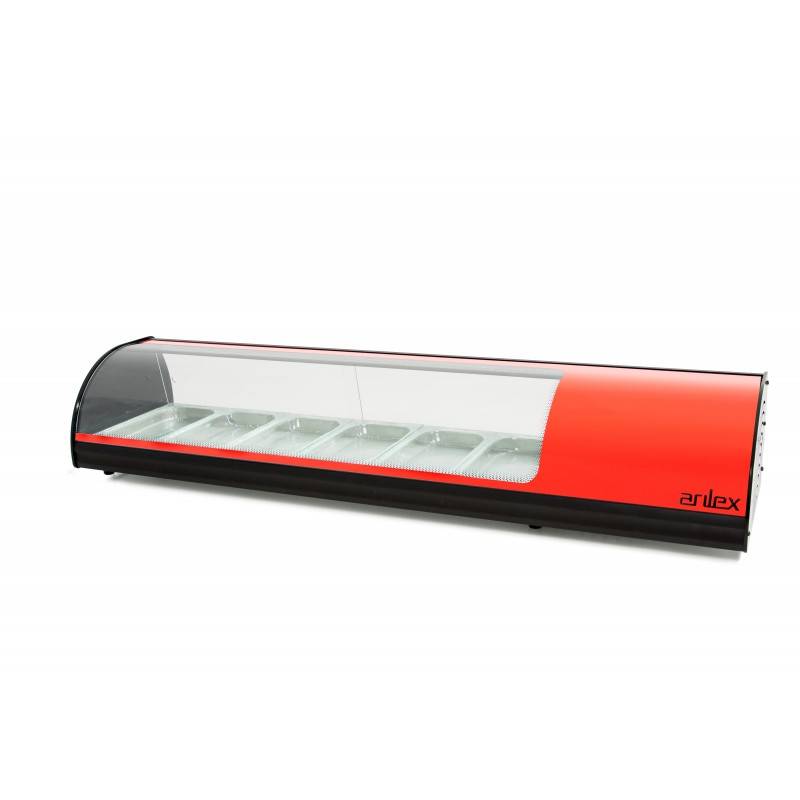 Mobiliario Vitrina refrigerada de tapas 6 bandejas GN1/3 color rojo ARILEX 6VTG-RO