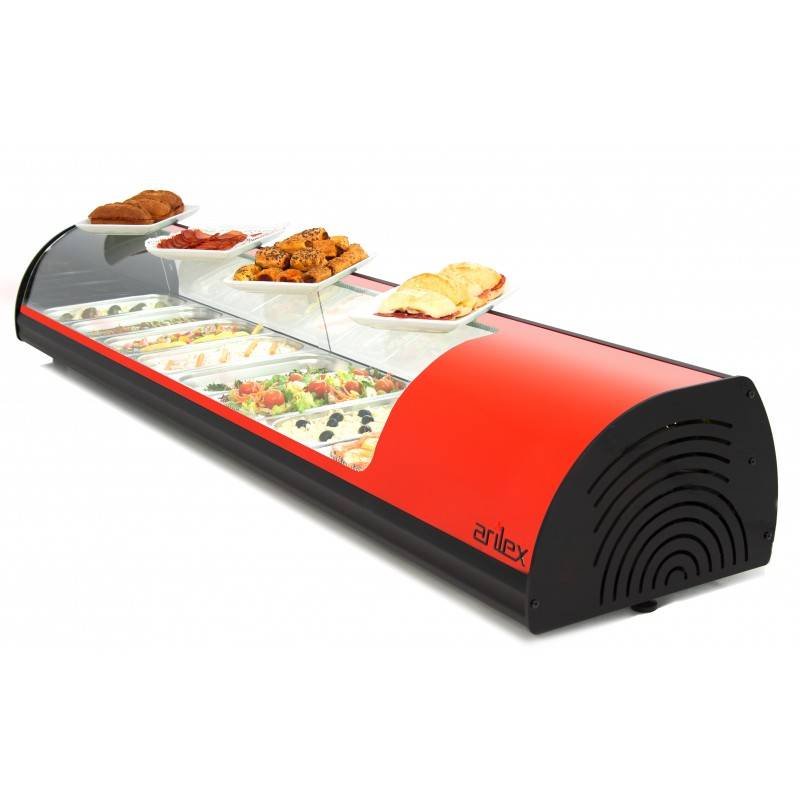 Mobiliario Vitrina refrigerada de tapas 8 bandejas GN1/3 color rojo ARILEX 8VTG-RO