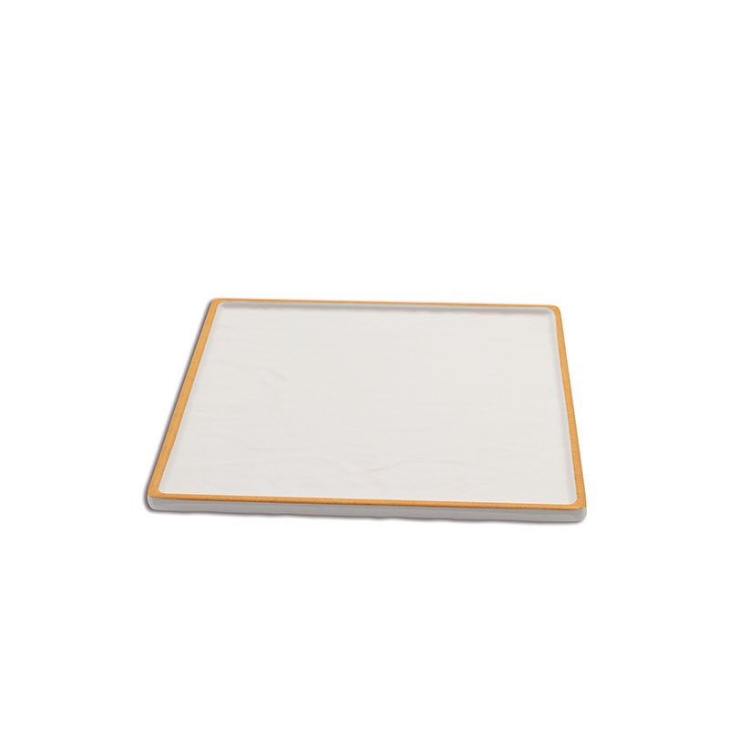 Fuente cuadrada mediana de Melamina 23 x 23 x 1,5 cm ADRIER Sunrise Blanco con borde naranja