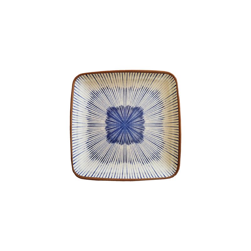 Plato cuadrado mediano de Melamina 22,5 x 22,5 x 2 cm ADRIER Chambao Crema y azul con borde marrón