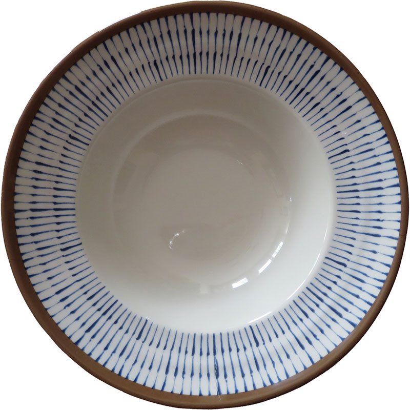 Plato de pasta de Melamina 25 cm Ø x 7 cm alt. ADRIER Chambao Crema y azul con borde marrón