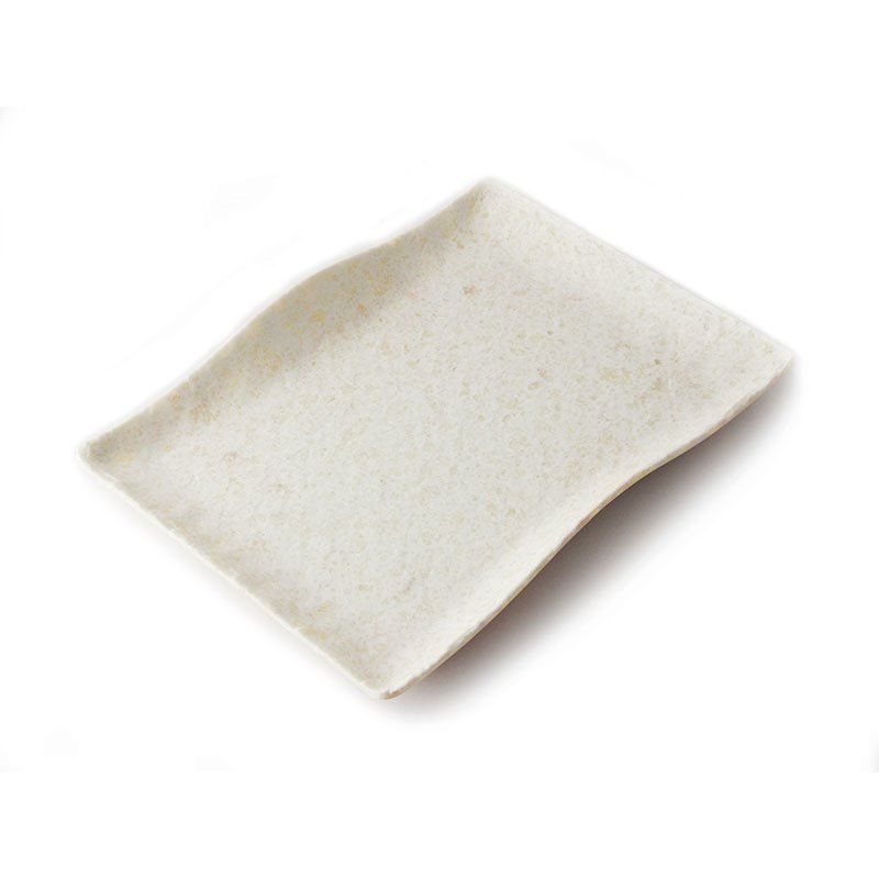 Plato rectangular mediano con borde ondeado de Melamina 27 x 19 x 3,5 cm ADRIER Terral Blanco mármol
