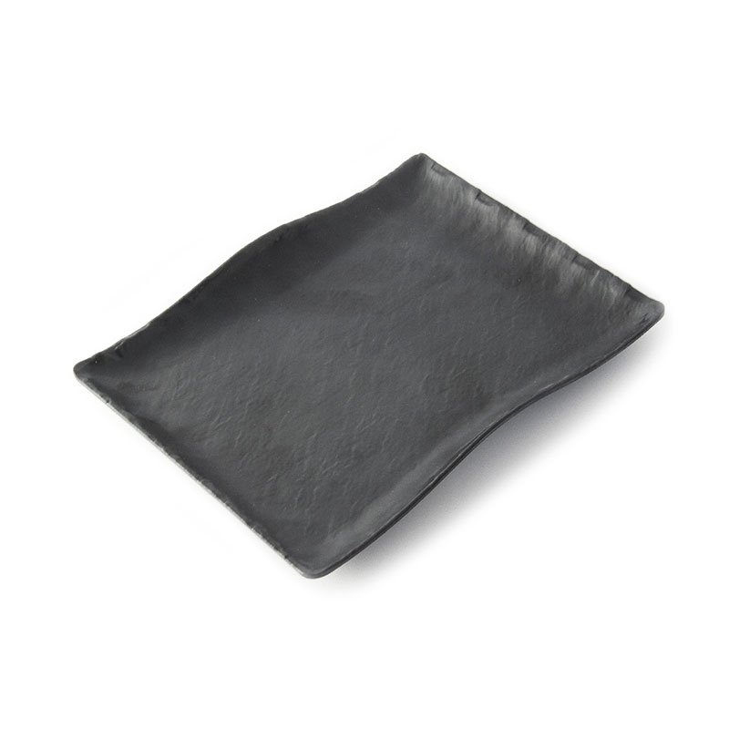 Plato rectangular mediano con borde ondeado de Melamina 27 x 19 x 3,5 cm ADRIER Terral Negro mate