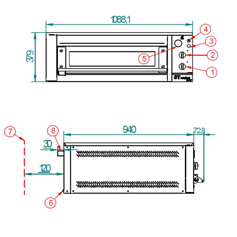 Dimensões internas: (W) 820 x (D)720 x (H)190 mmDimensões externas: (W)1090 x (D)990 x (H)390 mmPeso: 110 kgTemperatura máxima: 400º CPotência elétrica: 5.600 WConexão: Trifásico 3F + N + TCapacidade da bandeja: Distância entre bandejas: