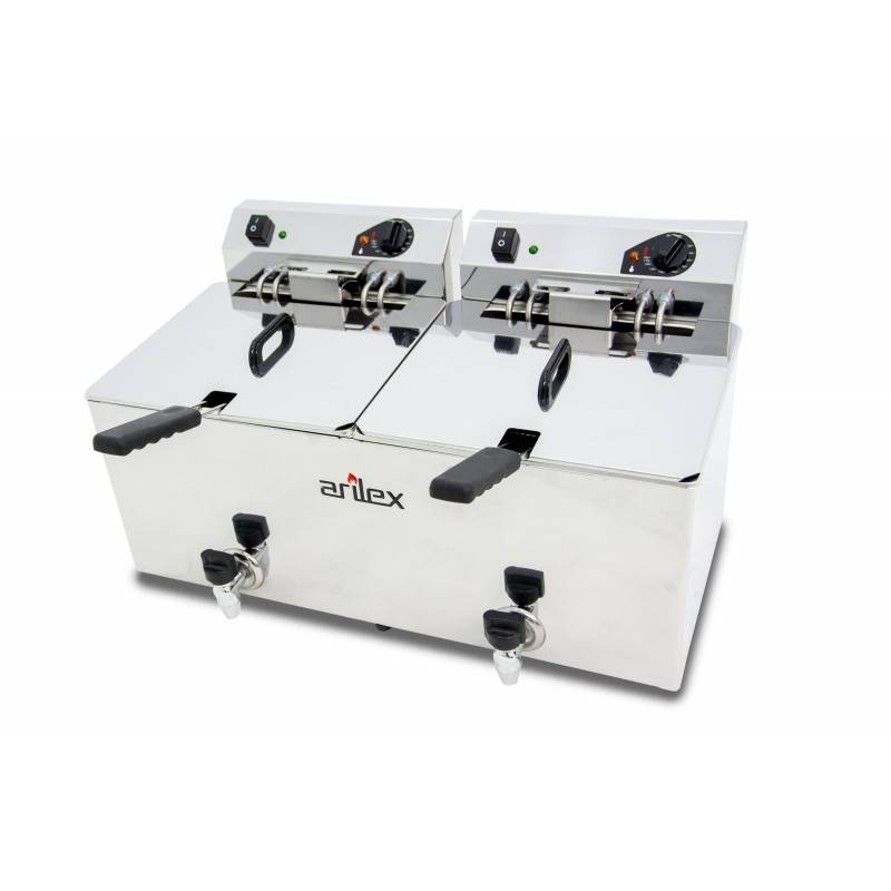 Fritadeira elétrica com torneira 12+12 litros com 7,5+7,5 kw trifásica com contator ARILEX EVO1212GTR