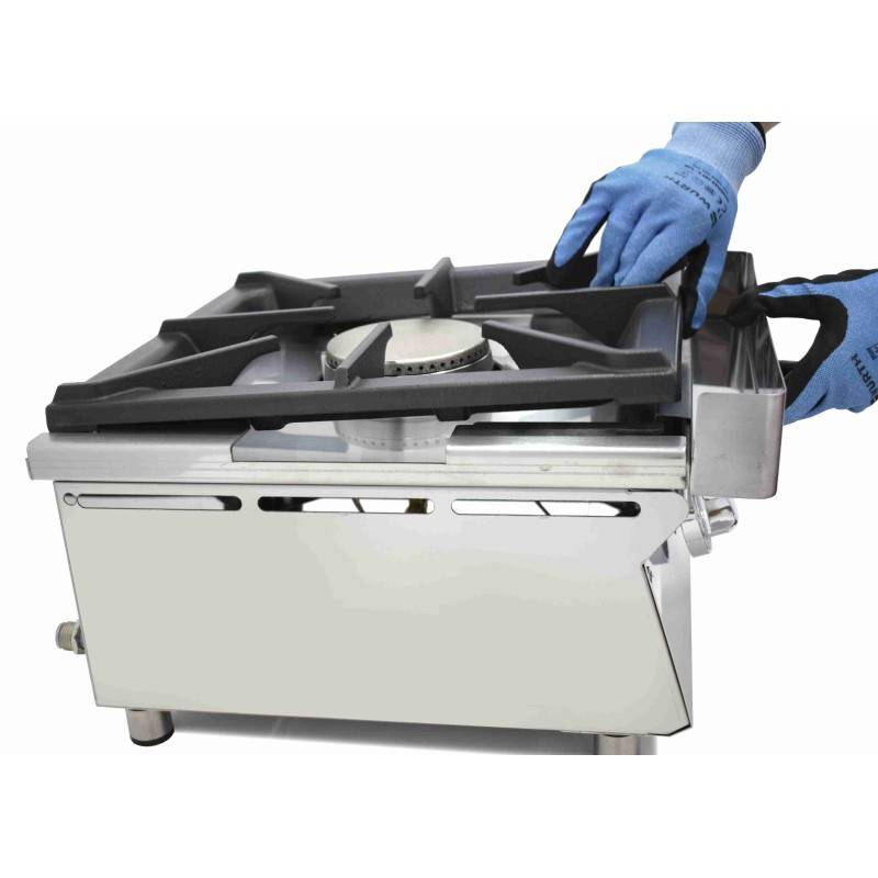 Oferta -40%Fogão industrial a gás com fogão com termopar com alto poder calorífico de 5,8 kw. Grelha de ferro fundido removível de alta dureza para facilitar a limpeza. Feito em Espanha com materiais de alta qualidade, CE certificado. Fabricado em aço inox com acabamento de alto brilho.