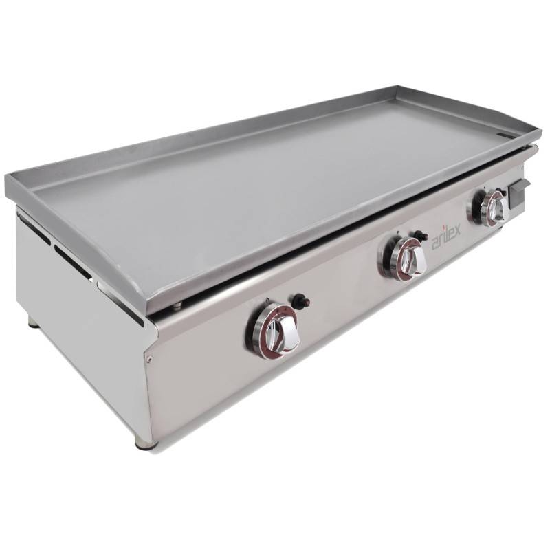 Oferta -40%Placa de torra de gás econômico Arilex aço laminado de 100PGL 6 mm com superfície de 100x40 cm. Ideal para pequenas e médias instalações. Para uso semi-intensivo. O cooktop tem um design único no mercado, já que é totalmente removível. Peitoral anti-respingo de 36 mm de altura. Equipado com controles Bakelite de alta qualidade com marcador máximo/mínimo