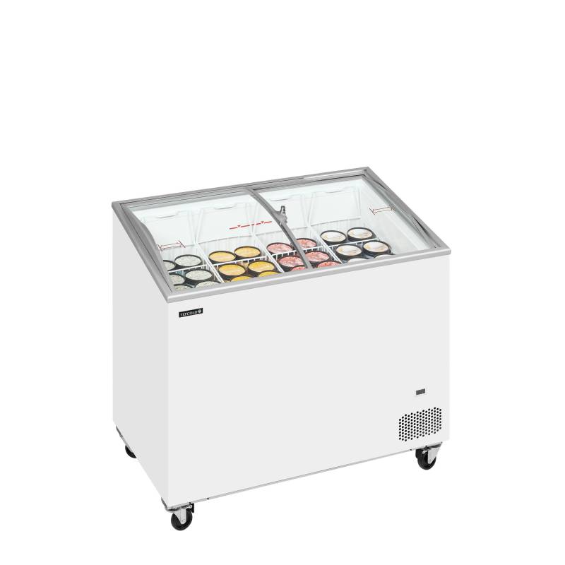 A gama padrão IC-SCEB de congeladores de gelados oferece uma unidade estável e solidamente construída a um preço competitivo. É uma excelente opção para empresas que iniciam a sua atividade, vendas sazonais, etc. Possui tampas de vidro curvas deslizantes para visibilidade do produto e um conjunto completo de cestos, prontos para serem preenchidos com deliciosos sorvetes e picolés. As rodas robustas permitem que a unidade seja facilmente deslocada.