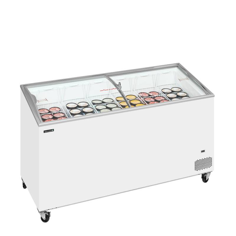 A gama padrão IC-SCEB de congeladores de gelados oferece uma unidade estável e solidamente construída a um preço competitivo. É uma excelente opção para empresas que iniciam a sua atividade, vendas sazonais, etc. Possui tampas de vidro curvas deslizantes para visibilidade do produto e um conjunto completo de cestos, prontos para serem preenchidos com deliciosos sorvetes e picolés. As rodas robustas permitem que a unidade seja facilmente deslocada.
