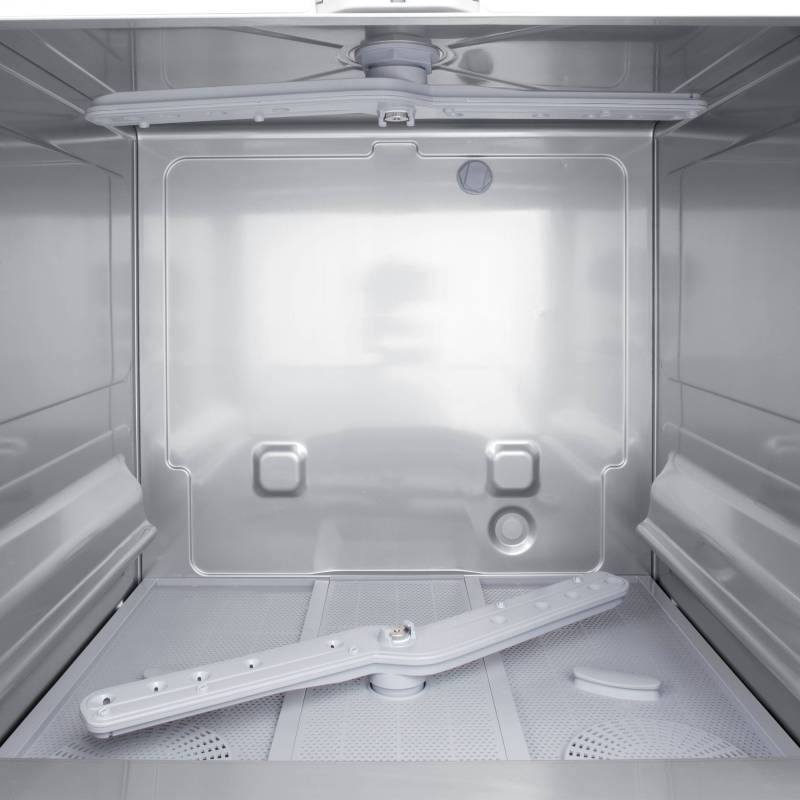 Máquina de lavar loiça com porta de parede dupla e braços superiores e inferiores para lavar.