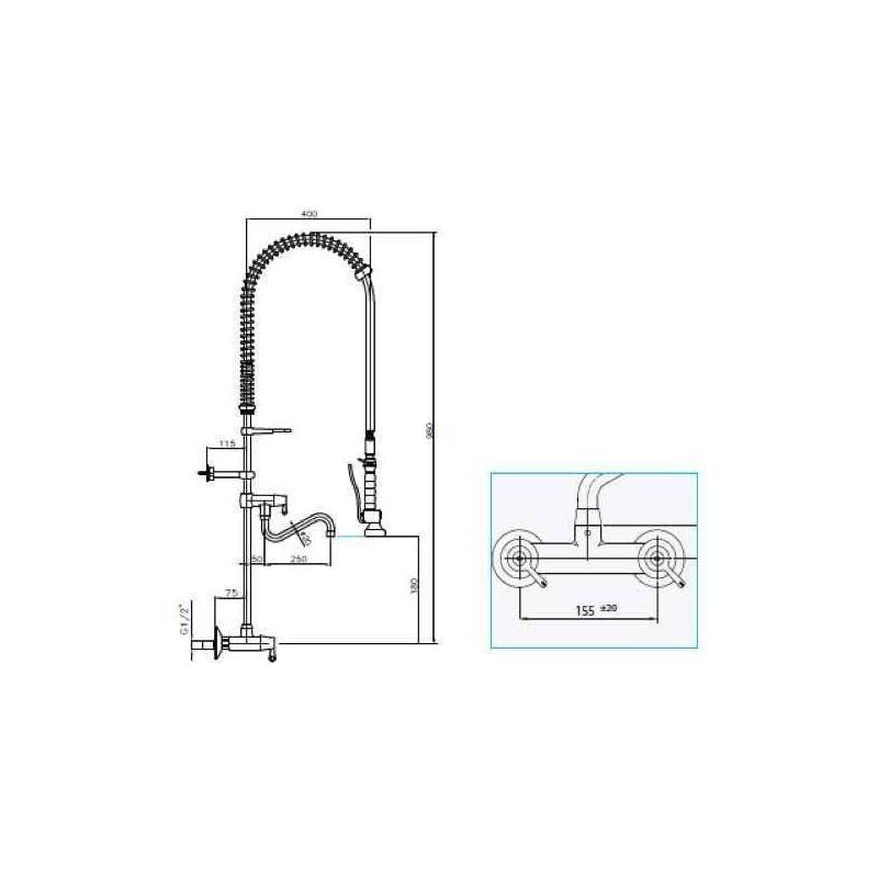 Torneira de chuveiro profissional de parede 2 águas com bico EDENOX GDP2C S1
