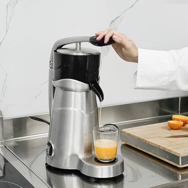 Exprimidor de cítricos eléctrico automático de presión por palanca. El rotor del exprimidor se pone en funcionamiento automáticamente tras el accionamiento manual de la palanca (bajada). Una vez se sube la palanca, el rotor para automáticamente.