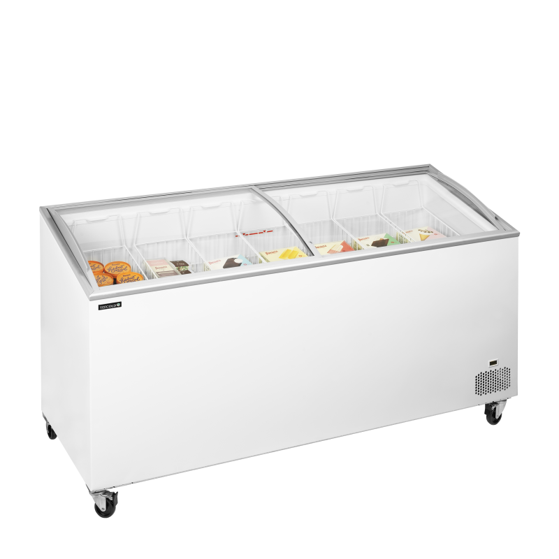 La gama estándar IC-SCEB de congeladores de helados ofrece una unidad estable y de construcción sólida a un precio competitivo. Se trata de una excelente opción para empresas que inician su actividad, ventas de temporada, etc. Cuenta con tapas de cristal curvas deslizantes para la visibilidad del producto y un completo conjunto de cestos, listos para llenarlos con deliciosa crema de helado y polos. Las robustas ruedas de alta resistencia permiten mover fácilmente la unidad.