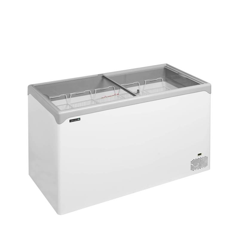 A gama premium de congeladores de gelados NIC apresenta um excelente design com cantos curvos, bordas arredondadas e tampas de vidro planas deslizantes. Estes congeladores são muito estáveis e robustos, mas ao mesmo tempo incorporam rodas para que possam ser facilmente movidos na loja. São ideais para exibir alimentos congelados, incluindo gelados e gelados. Tem um conjunto completo de cestos.