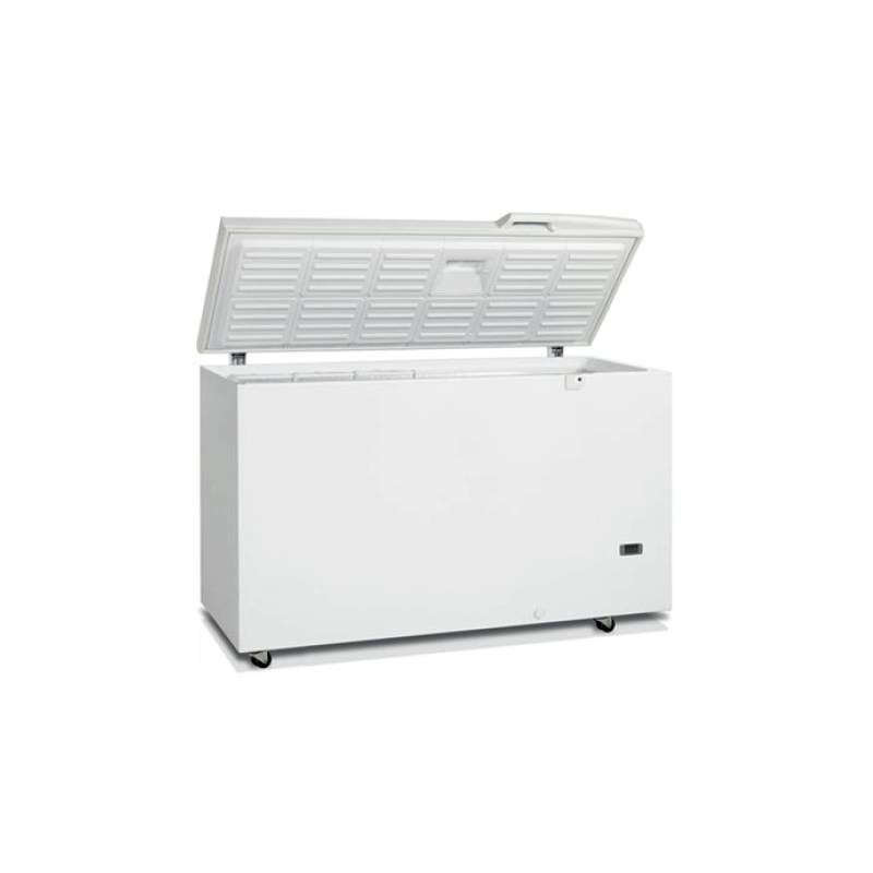 Freezer Baú Horizontal capaz de operar em temperatura positiva. Sua faixa de temperatura é de -25º a +5º. Fabricação europeia de alta qualidade, com tampa anticorrosão e tanque externo, dreno para facilitar sua limpeza e rodas para maior conforto no manuseio.