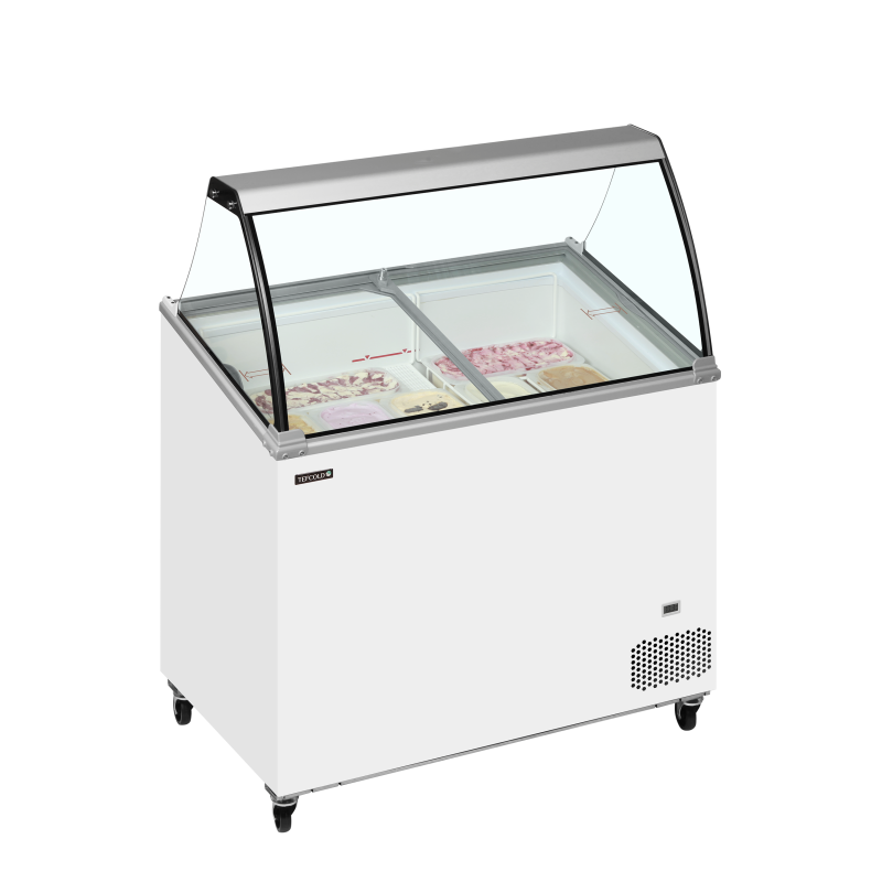 La gama IC-SO de vitrinas de helados ofrece una excelente calidad a un precio competitivo. El modelo cuenta con tapas deslizantes que permiten un fácil acceso al helado para servir y ayuda a aislar la unidad cuando no está en uso. Dispone de una tapa de cristal tipo vitrina y es idónea para la personalización con la marca para atraer la atención de los clientes hacia la unidad y su gélido contenido. El congelador se optimiza con cestos que pueden alojar tarrinas de plástico de 5 litros en la parte superior y dispone de espacio de almacenamiento debajo.
