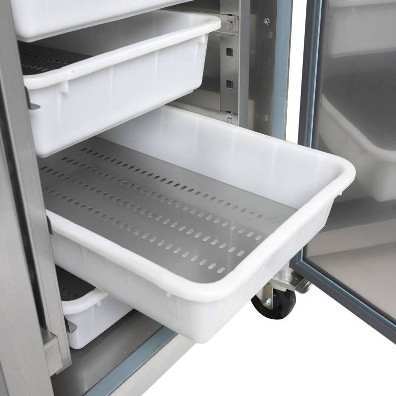 A gama RKS de refrigeradores de peixe verticais foi criada para cozinhas profissionais e é ideal para o armazenamento ideal de peixe e marisco. Inclui 7 bandejas de peixe com elevadores de aço inoxidável. O gabinete é feito de aço inoxidável SS304 de alta qualidade para hotelaria e tem rodas resistentes para mobilidade, o que é muito útil para limpeza.