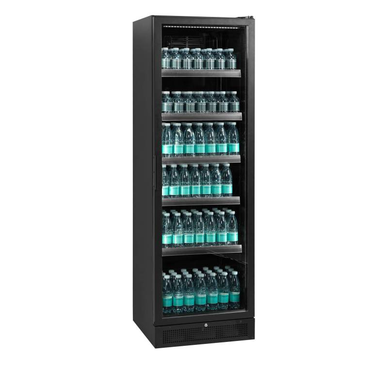 A SCU1425 gama de refrigeradores de garrafas leva a refrigeração de exibição acessível a um novo nível de qualidade. O exterior e o interior em preto conferem-lhe um toque elegante. Este frigorífico possui uma porta de vidro reversível de altura total com estrutura de alumínio, prateleiras ajustáveis e iluminação LED interior para uma apresentação ideal do produto. Um sistema de resfriamento assistido por ventilador garante um resfriamento homogêneo em todo o gabinete. Também disponível como um modelo de porta de vidro sem moldura.