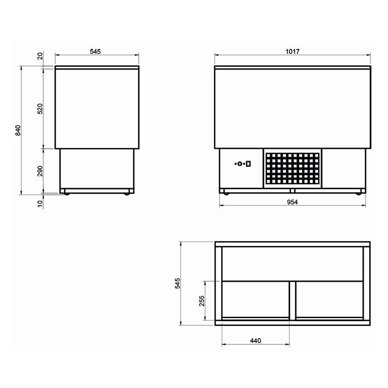 Dimensões (mm): 1017 x 545 x 840Os produtos comercializados em hostelbar.es são para uso profissional ou industrial e, portanto, não se aplica a legislação sobre bens de consumo correspondente ao Real Decreto Legislativo 1/2007 nem à lei 23/2003. Dada a natureza das mercadorias, a regulação da garantia é regida pelo Código de Comércio.