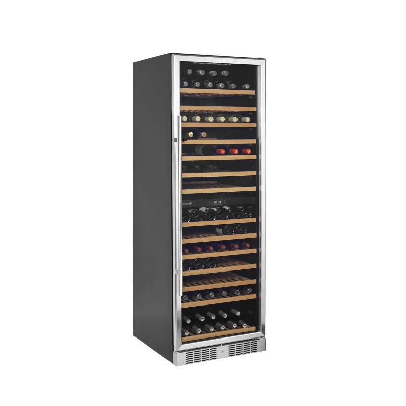 A linha TFW-F de refrigeradores de vinho de aço inoxidável oferece uma solução moderna para exibir e armazenar garrafas de vinho. Apresenta um design elegante com uma frente em aço inoxidável, interior preto, iluminação LED suave e prateleiras de madeira amovíveis. O moderno sistema de refrigeração é altamente eficiente e reduz o ruído, o calor e o consumo de energia do frigorífico.
