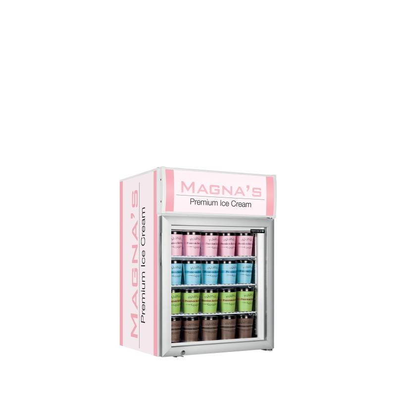 A gama UF-GCP de congeladores de mesa inclui um ecrã iluminado por LED que ajudará a atrair a atenção dos clientes. É fácil de personalizar para atender às suas necessidades, pois tem prateleiras e pés ajustáveis. Coloque o congelador no balcão para incentivar as vendas por impulso.