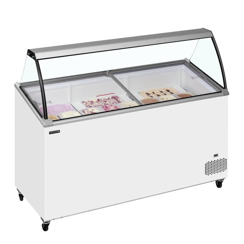 A gama IC-SO de vitrines de sorvete oferece excelente qualidade a um preço competitivo. O modelo possui tampas deslizantes que permitem fácil acesso ao sorvete para servir e ajuda a isolar a unidade quando não está em uso. Possui tampo vitrine de vidro e é ideal para personalização com a marca para atrair a atenção dos clientes para a unidade e seu conteúdo gelado. O congelador é otimizado com cestos que podem acomodar cubas de plástico de 5 litros na parte superior e tem espaço de armazenamento por baixo.